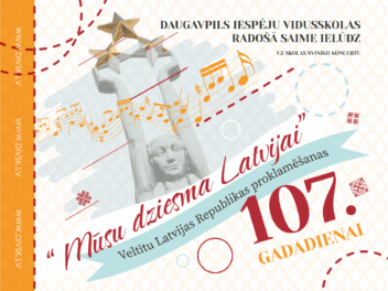 10. novembrī mūsu skolā norisinājās svētku koncerts ar kuru godinājām Latvijas Republikas proklamēšanas 107. gadadienu. Koncerts pulcēja skolēnus, skolotājus, vecākus un viesus, radot svinīgu, cieņas un pateicības pilnu atmosfēru. Šī gada svētku moto – “Mūsu dziesma Latvijai” – atgādina, ka tieši dziesma un deja vieno mūs kā tautu. Būt latvietim un Latvijas pilsonim nozīmē daudz…
