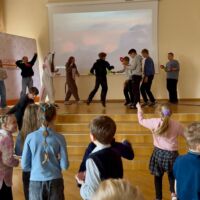 Bērni dziedāja, dejoja, spēlējās un kopā ar skolotājiem radīja īstu svētku noskaņu.