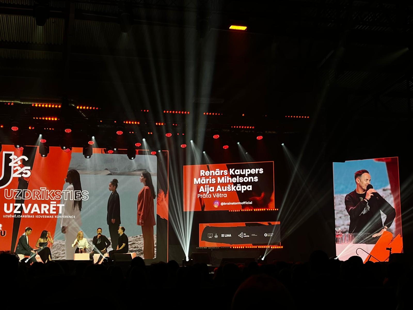 7.novembrī notika JA Latvia rīkotā uzņēmējdarbības iedvesmas konference “Uzdrīksties uzvarēt 2025”. Šogad galvenās tēmas bija drosme un spēja ieraudzīt to, kas slēpjas aiz šodienas horizonta. Prasme izsapņot un radīt lietas, kas vēl nepastāv. Spēja domāt par šodienas lēmumu ietekmi uz mūsu rītdienu. Kopīgi meklējot veidus, kā mērķtiecīgi būvēt savu uzņēmumu, veidot karjeru vai īstenot radošo ideju tā, lai tā nestu augļus ilgtermiņā. Konference pulcēja 7500 dalībniekus, kuri varēja iedvesmoties no Latvijā un pasaulē pazīstamām personībām. Kā arī dalībnieki varēja izbaudīt grupas “Prāta Vētra” uzstāšanos.