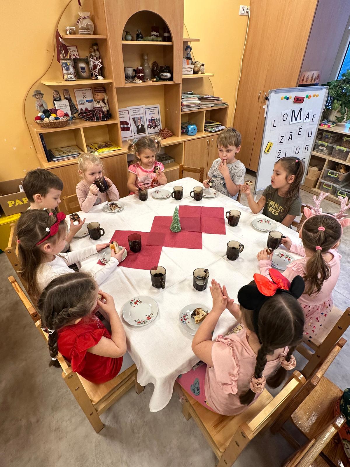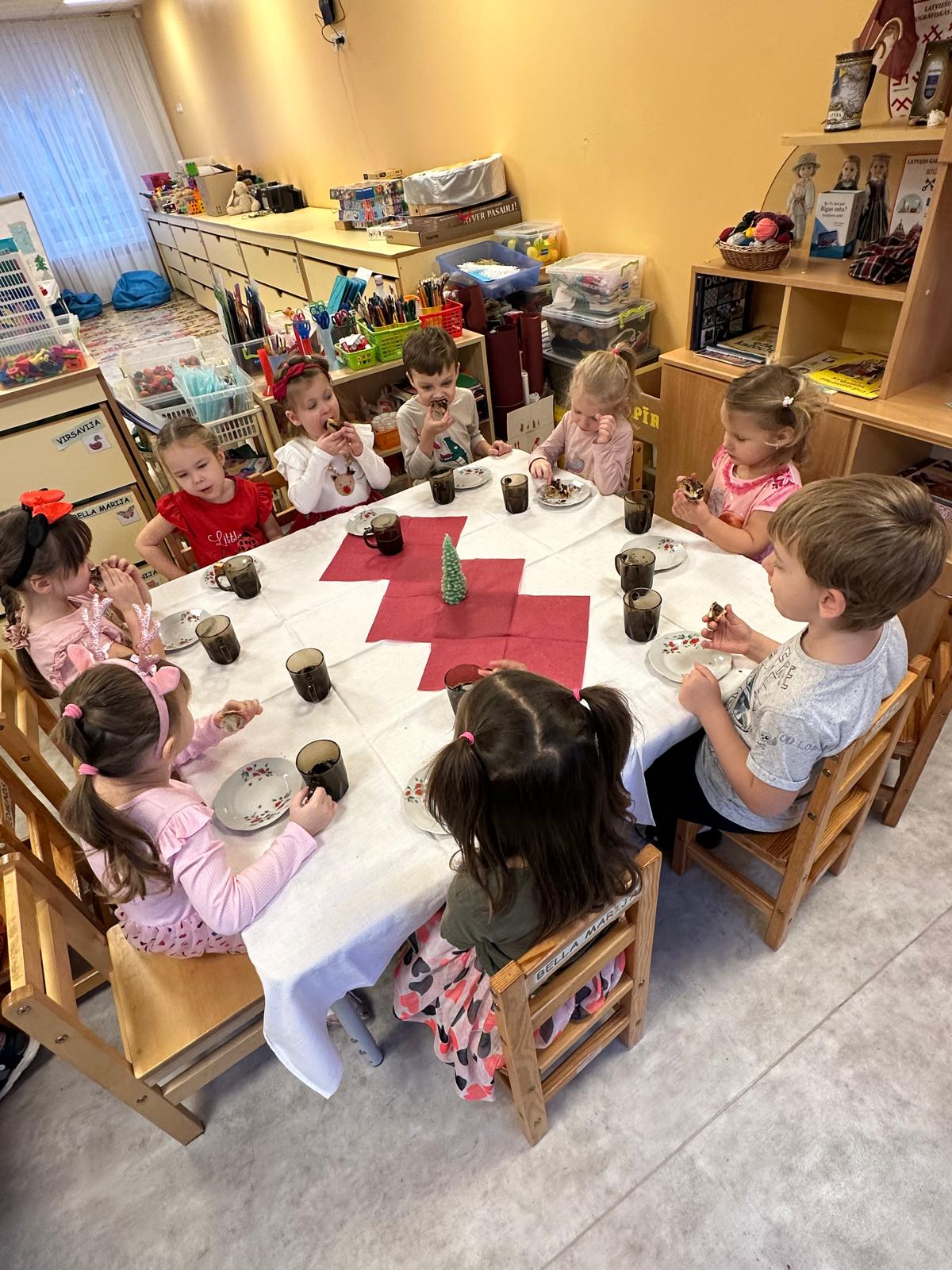 Ziņkārīgie rūķi uzdeva bērniem arī dažādus jautājumus, kas saitīti ar Ziemassvētku gaidīšanas laiku un saņēma pareizās atbildes. Pēc svecītes iededzināšanas tika sarīkota kopīga tējas dzeršana ar svētku kliņģeri.