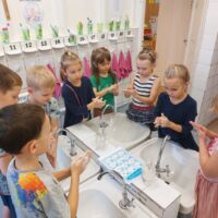 Bērniem grupiņās tika rīkotas rotaļnodarbības, kuru laikā tika pārrunāts par roku mazgāšanas nozīmi, nostiprināts roku mazgāšanas algoritms. Visi noskatījās videofilmu “Mistera Ziepiņa roku mazgāšanas dziesmiņa”