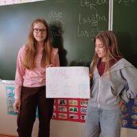 Mūsu skolā nedēļas garumā skolēni latviešu valodas stundās iesaistījās dažādās ar valodu saistītās aktivitātēs. Mazāko klašu skolēni stundās runāja par valodu daudzveidību pasaulē, kā arī par latviešu valodas skaisto skanējumu, par līdzīgiem vārdiem dažādās valodās, piemēram, “saule,” “mamma” u.c. Skolēni mēģināja izrunāt dažādus mēles mežģus. Tie ir svarīgi ne tikai izrunas trenēšanai, bet arī jautrībai. Žigls žogu zaglis zog žogus – ne visiem no pirmās reizes izdevās tos izlasīt.