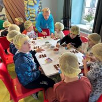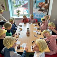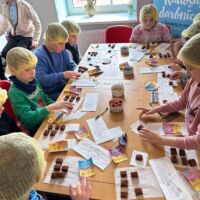 Pirmais pieturas punkts bija Skrīveri, kur bērni apmeklēja Skrīveru saldumu konfekšu darbnīcu. Tur viņi uzzināja, kā top slavenās “Gotiņas”, un paši varēja izmēģināt roku konfekšu gatavošanā. Aromāts un saldā garša priecēja ikvienu!