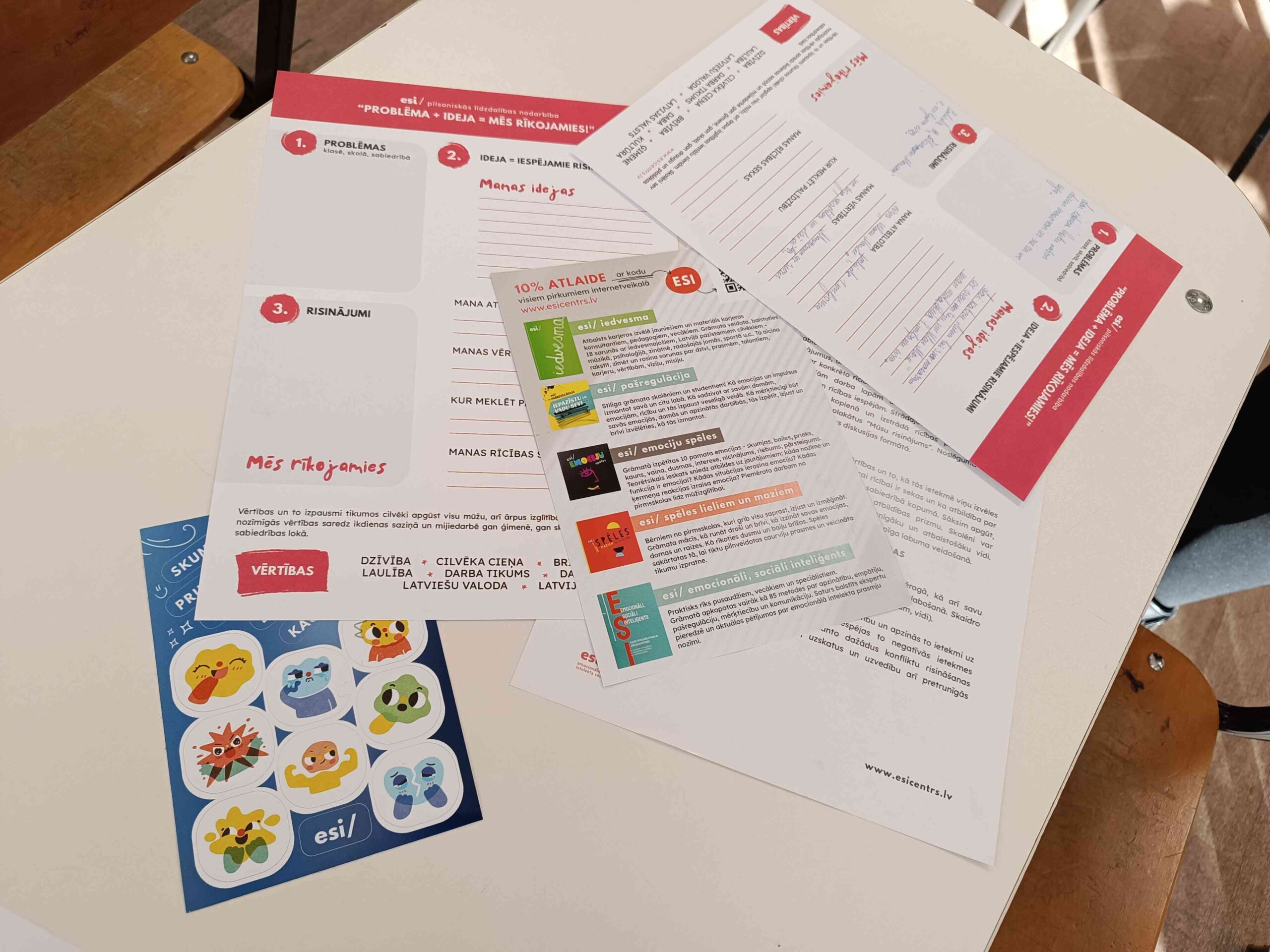Praktiskajā daļā skolēni ar aizrautību strādāja grupās, pildot darba lapas par savām vērtībām un iespējām rīkoties sarežģītās situācijās. Veidojot plakātus “Mūsu risinājums”, bērni izjuta gan gandarījumu par paveikto, gan pārliecību, ka viņu idejas ir nozīmīgas un uzklausītas.