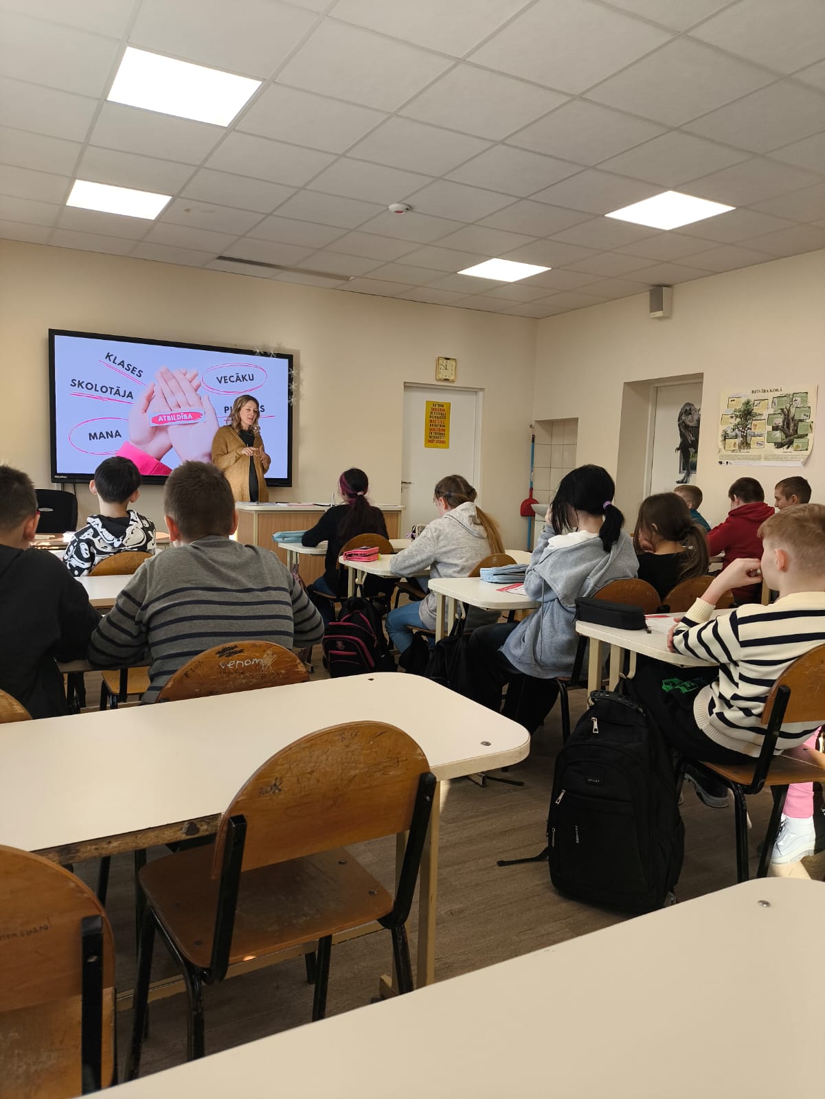Nodarbība noritēja aktīvā un skolēniem emocionāli iesaistošā gaisotnē. Diskusijās par ikdienas situācijām klasē un kopienā skolēni dalījās savā pieredzē, pauda viedokļus, reizēm arī neizpratni, bet bieži – patiesu interesi un vēlmi rast taisnīgus risinājumus. Tas palīdzēja labāk izprast, kā rīcība ietekmē citus un kāpēc atbildība ir svarīga.