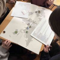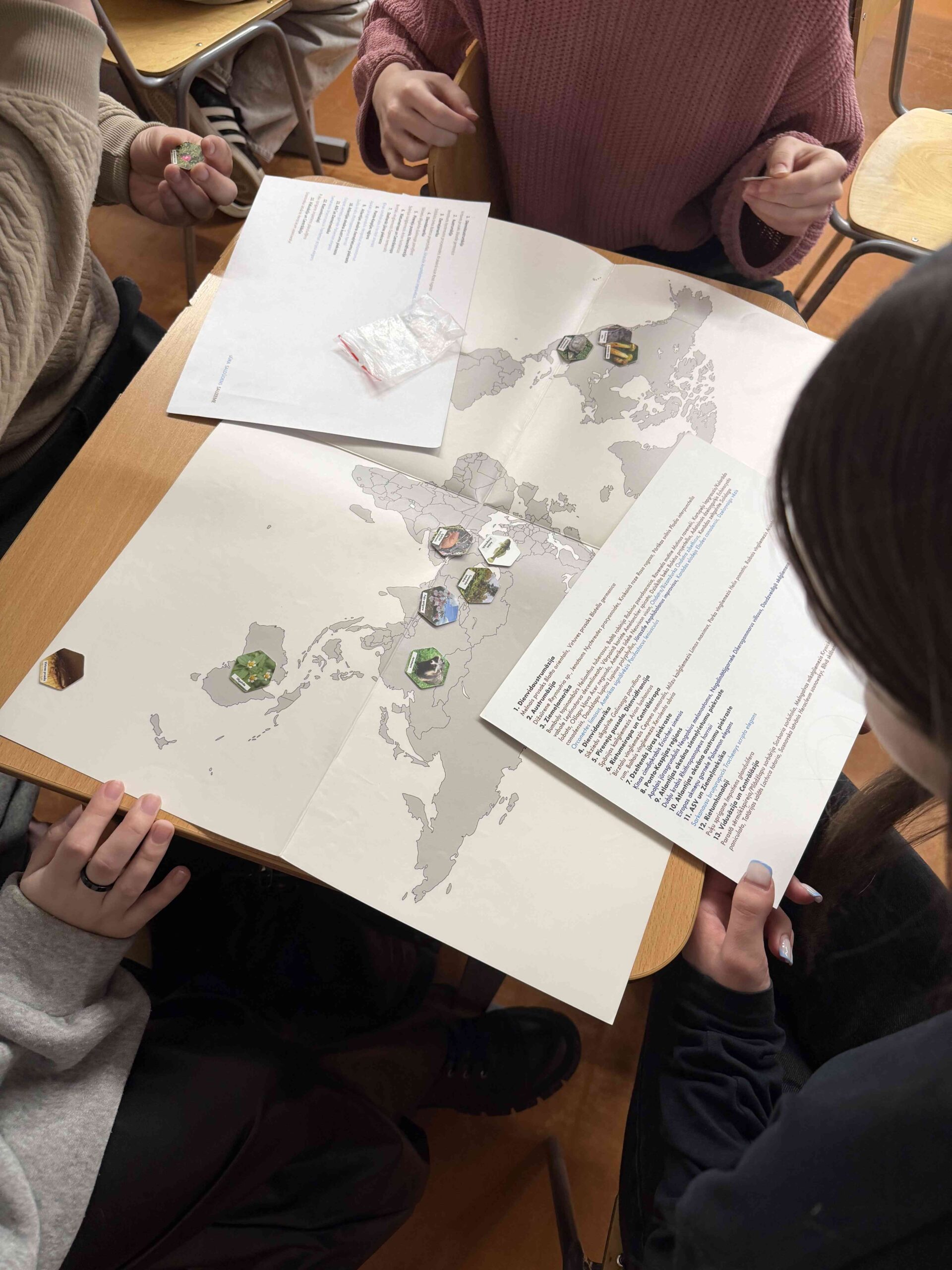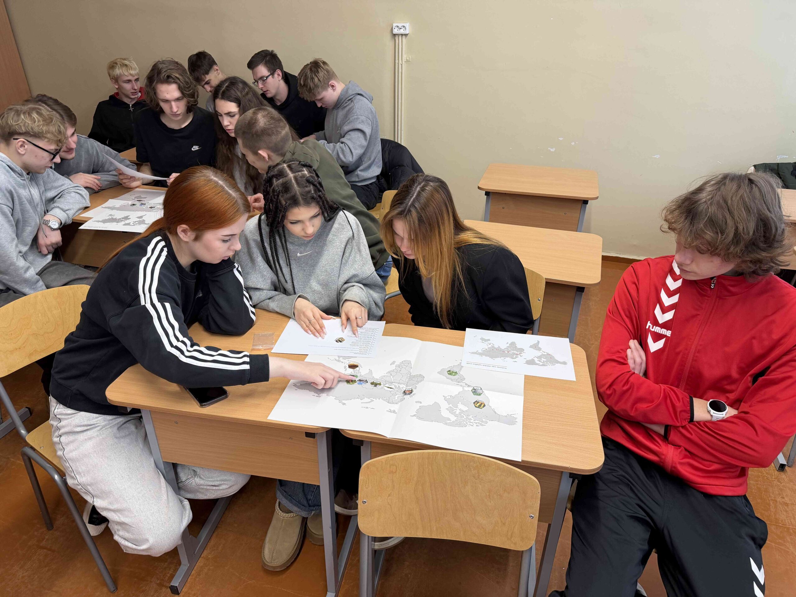 Strādājot grupās, skolēni ar prezentāciju un praktisku uzdevumu palīdzību izzināja, kas ir svešzemju un invazīvās sugas, kā tās nonāk Latvijā un kāpēc tās var apdraudēt vietējo dabu. Analizējot attēlus un izmantojot pasaules karti, skolēni noteica sugu izcelsmi un izplatības ceļus, secinot, no kuriem pasaules reģioniem svešzemju sugas Latvijā nonāk visbiežāk.