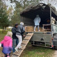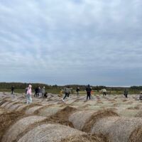 Ekskursijas nobeigumā skolēniem bija iespēja paskriet un paspēlēties uz siena ruļļiem.