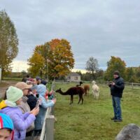 Ceļojums sākās Alpaku salā, kur skolēni varēja vērot šos burvīgos dzīvniekus tuvplānā, ka arī paglaudīt tos. Alpaku bija daudz, un tās izrādījās ļoti draudzīgas. Mēs uzzinājām, kā tās tiek koptas un kāda ir to ikdiena. Skolēniem bija iespēja izmēģināt diega veidošanu no alpakas vilnas.