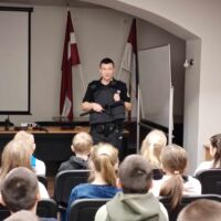 Lai veicinātu skolēnu atbildības sajūtu, disciplinētību, pilsonisko līdzdalību un pozitīvo uzvedību, sociālie pedagogi sadarbībā ar Pašvaldības policiju organizēja 4.klašu skolēniem pasākumu – tikšanos ar Pašvaldíbas policiju viņu darba vietā, Muzeja ielā. Tikšanās laikā skolēni uzzināja, kā tiek organizēts kārtības sargu darbs pilsētā. Nodaļas profilaktiskajā darbā ar jaunatni inspektori pastāstīja bērniem par pašvaldības policijas darbu, par aprīkojumu, kuru izmanto policisti savā ikdienas darbā un pret likuma pārkāpējiem. Ceturtklasnieki ieraudzīja, kā notiek video novērošana mūsu pilsētā, kā tā palīdz uzturēt kārtību. Skolēni aktualizēja savas zināšanas par ceļu satiksmes noteikumiem un policistu rīcību, ja tie konstatē pārkāpumus. Nodaļas profilaktiskajā darbā ar jaunatni priekšnieks Artūrs Davidovs atgādināja par skolas iekšējās kārtības noteikumiem, par to neievērošanas sekām, kas var novest pie administratīvā soda.