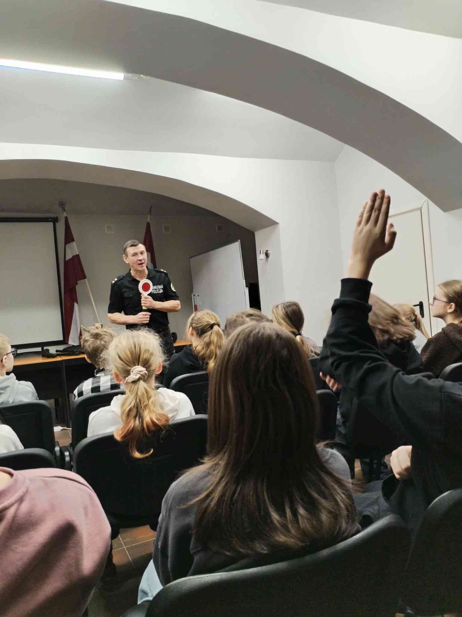 Skolēni atkārtoja un nostiprināja zināšanas par ceļu satiksmes noteikumiem, kā arī uzzināja, kā policisti rīkojas pārkāpumu gadījumos. Jaunatnes profilakses nodaļas priekšnieks Artūrs Davidovs atgādināja par skolas iekšējās kārtības noteikumu ievērošanas nozīmi un iespējamajām sekām, tostarp administratīvo atbildību, ja noteikumi tiek pārkāpti.