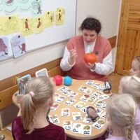 Nodarbības noritēja izglītojoši, atraktīvi un dinamiski. JAUTRĀ MĒLĪTE un TĀS PIEDZĪVOJUMI ļoti patika bērniem. Bērni veica lūpu un mēles vingrinājumus, kas ļauj nostiprināt artikulācijas aparātu, veica elpošanas iestrādes vingrinājumus, kā arī demonstrēja savas prasmes attīstīt saistīto runu par tēmu “Rudens”.