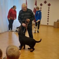 Centra vadītāja Irina Kapitoviča iepazīstināja bērnus ar suņiem, pastāstīja par viņu īpašībām un katras sugas īpatnībām . Īsumā pastāstīja par klubu, atgādināja bērniem par pareizu uzvedību satiekoties ar svešiem suņiem.
