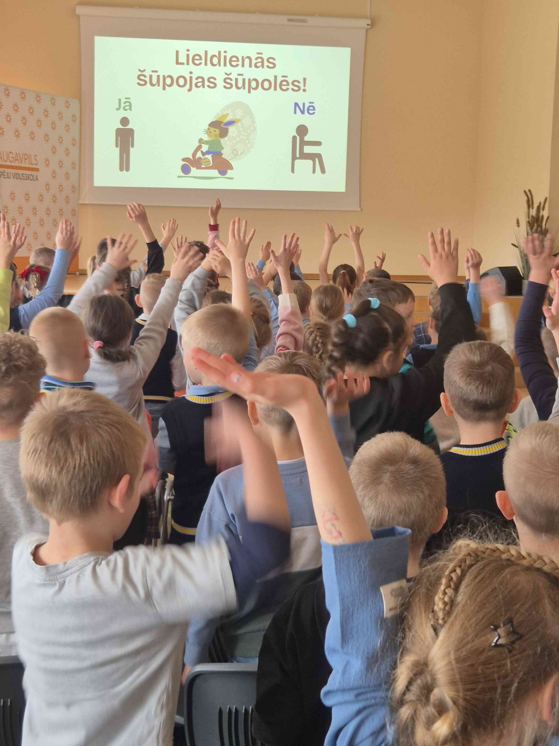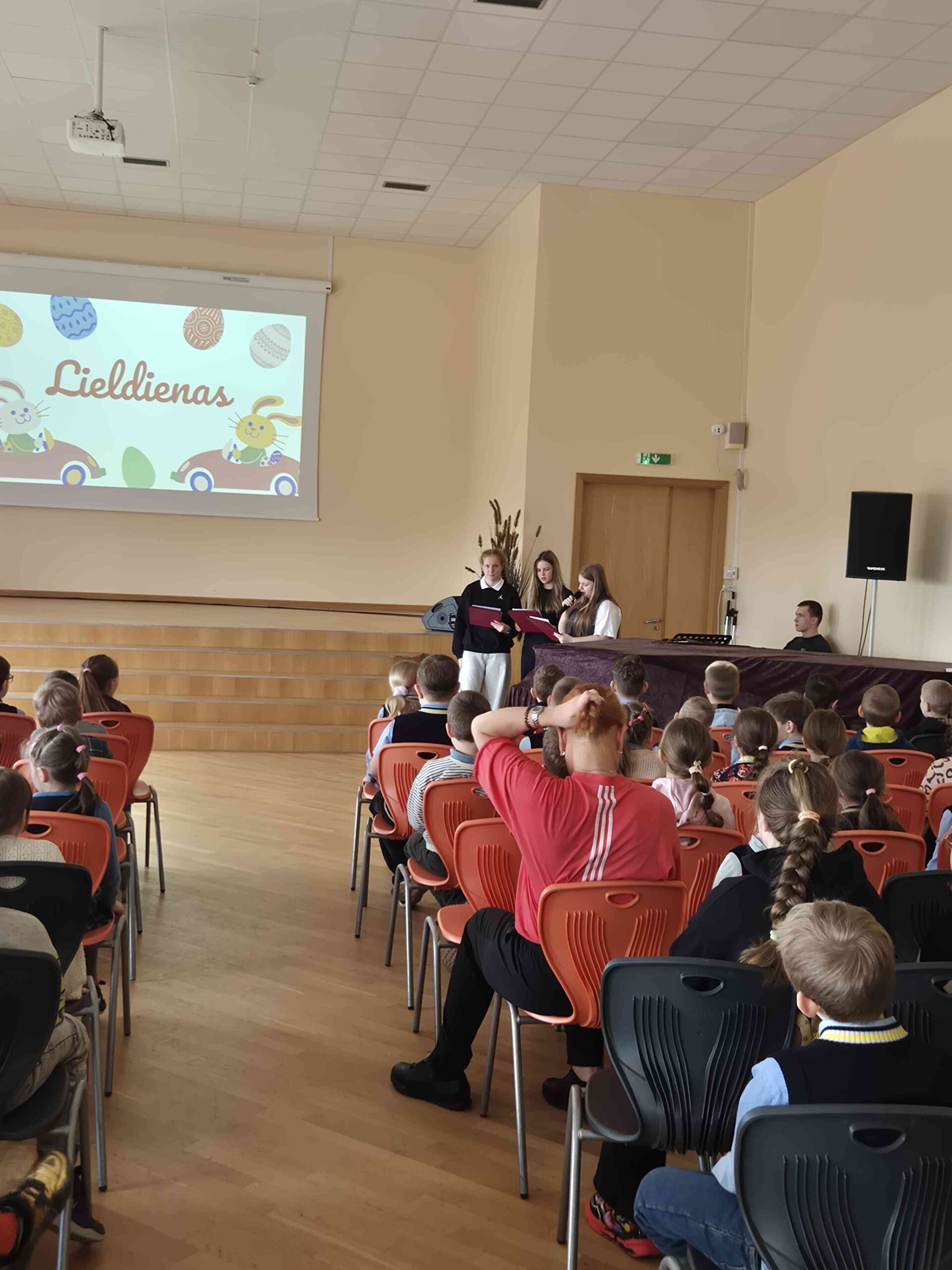 Pavasaris skolā atnāca ar priecīgu un krāsainu Lieldienu pasākumu, kas bija īpaši organizēts sākumskolas skolēniem. Šo pasākumu ar lielu atbildību un radošumu sagatavoja 8. klases skolēni, kuri bija izveidojuši dažādas aktivitāšu stacijas. Pasākuma formāts bija skolēns-skolēnam.