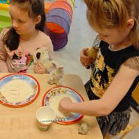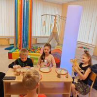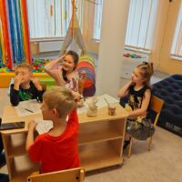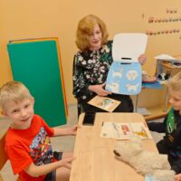 2025. gada 9. aprīlī Liepājas ielā 37 logopēde Olga Viktorovska novadīja runas attīstības pasākumu“Literārā pēcpusdiena”. Pasākumā tika runāts par mājdzīvnieku lomu dzīvē, pievēršot īpašu uzmanību mūsu mazākajiem ģimenes locekļiem. Bērni bagātināja savu vārdu krājumu, ar pirkstiem rakstīja burtus uz mannas putraimiem, kopā ar logopēdi lasīja pasakas par mājdzīvniekiem un mēģināja atstāstīt tās.