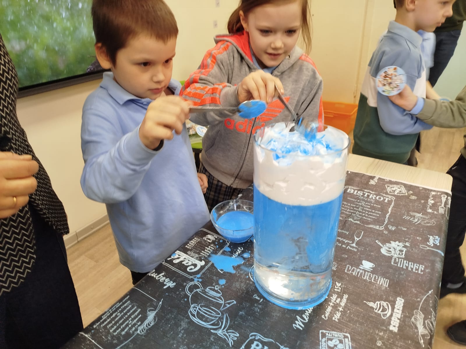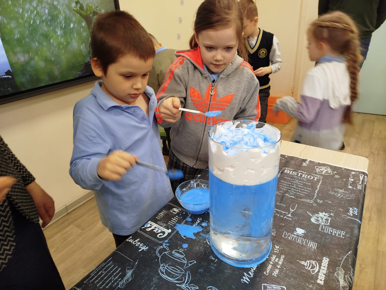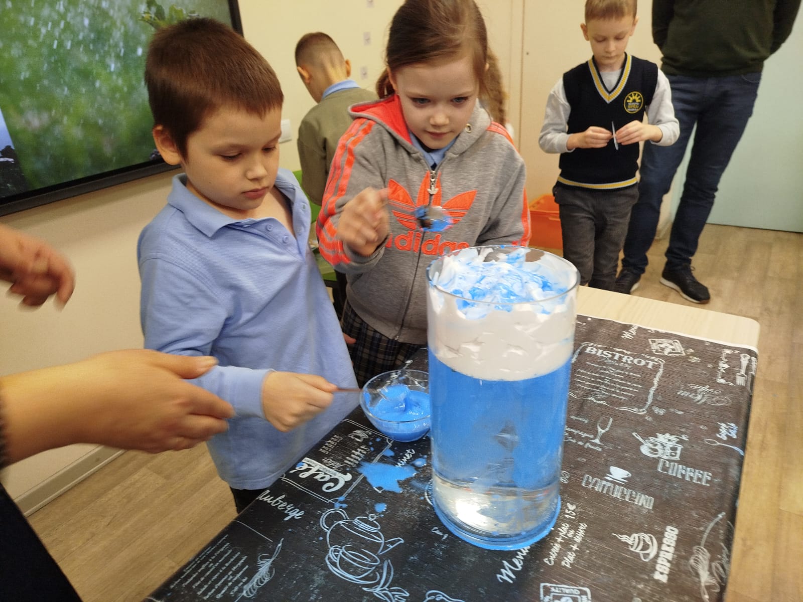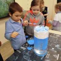 Skolēni izgatavoja spineri un pētīja kustību un pretestības spēku, noskaidroja, kāpēc daži priekšmeti peld, bet citi grimst, kā arī veidoja “lietus mākoņus” burkā, lai saprastu, kā rodas lietus. Interesi raisīja arī skaņas eksperiments ar konservu kārbu un gumiju, kā arī pārsteidzošā krāsu maiņa, sajaucot cieti ar jodu.