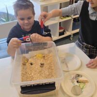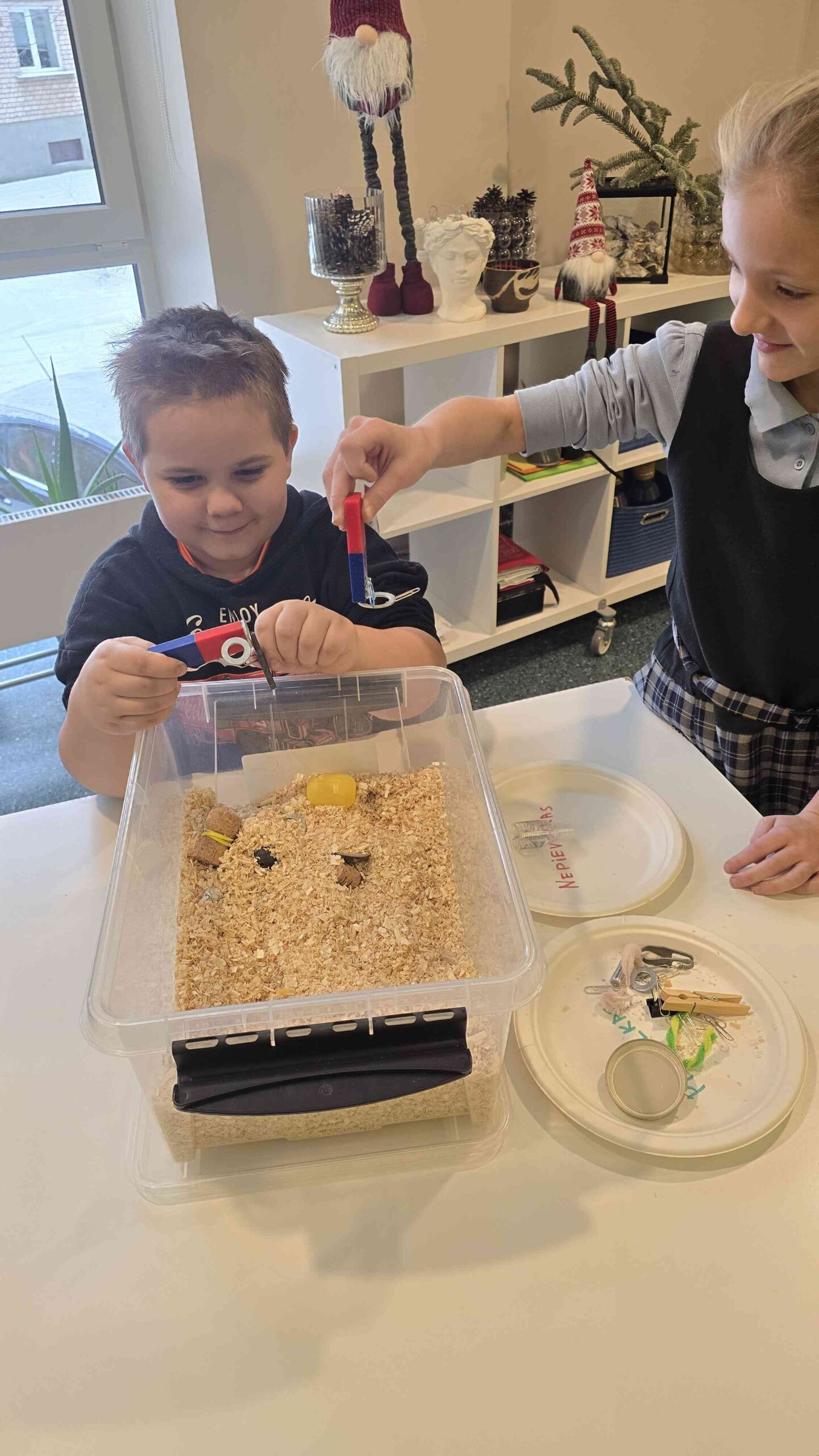 Mazie pētnieki paši pārbaudīja, kuri priekšmeti pievelkas magnētam, bet kuri – nē, izmantojot dažādu materiālu paraugus. Darbojoties grupās uzdevumā “Apslēpto dārgumu meklētājs”, bērni mācījās sadarboties, novērot un izdarīt secinājumus.