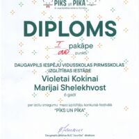 Esam ļoti priecīgi un lepojamies ar mūsu audzēknēm, kuras pārstāvēja Daugavpils Iespēju vidusskolas pirmsskolas izglītības iestādes 24. mazo izpildītāju konkursā – festivālā PĪKS un PĪKA, izcīnot I pakāpes diplomu.