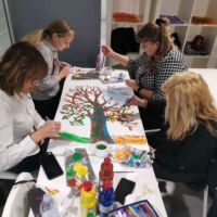 Projekta ietvaros no 21. līdz 26.novembrim Romā notika skolotāju apmācības par tradicionālās mākslas tehnikas un IKT mākslas rīku izmantošanu, lai interaktīvā veidā mācītu savus priekšmetus. Šajās apmācībās piedalījās angļu valodas skolotāja Viktorija Korotkina un vizuālās mākslas skolotāja Oksana Barkovska, ka arī citi kolēģi no Spānijas, Polijas, Vācijas un Francijas.