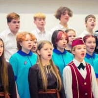 Skanīgas dziesmas izpildīja 1.a un 2.a skolēnu koris, 2.-5.kl. meiteņu koris, 6.-9.kl. meiteņu koris un 9.-12.kl. jauktais koris “Nojauta”, 7.-9.kl. zēnu ansamblis un 3.-6.kl. zēnu koris.
