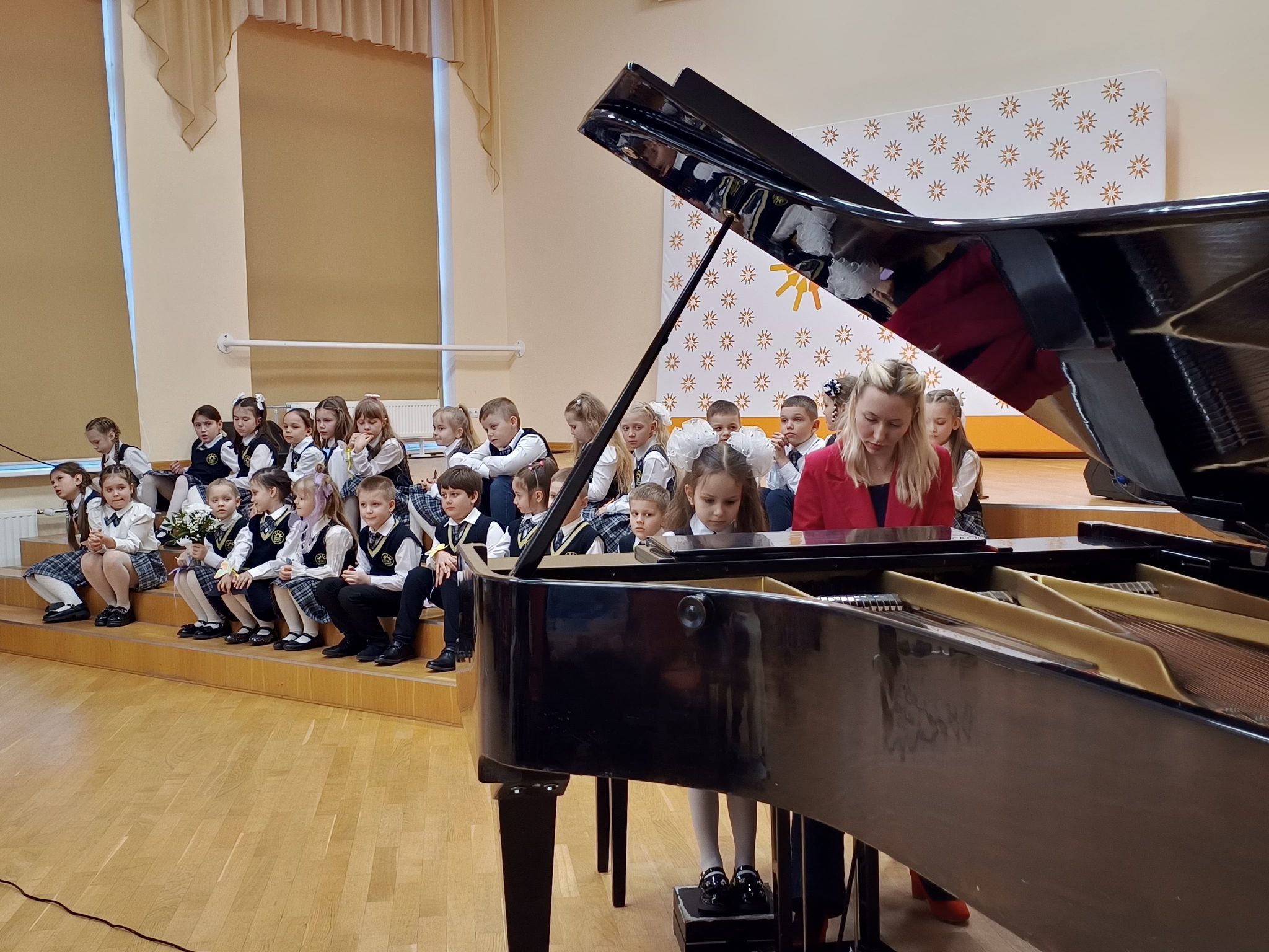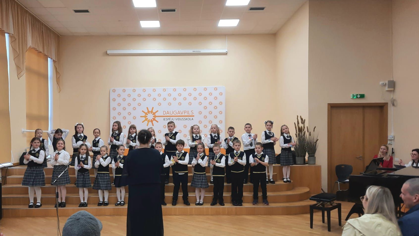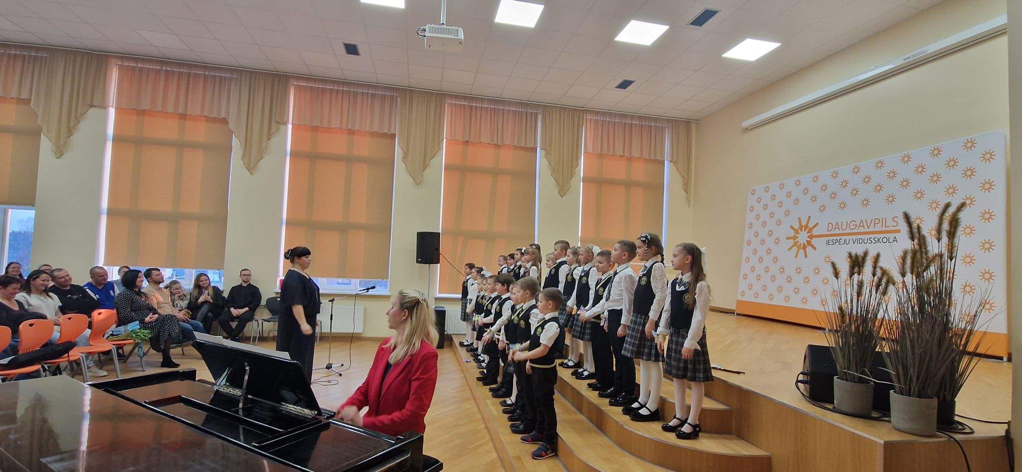 Pagājušajā nedēļā, saulainās otrdienas pievakarē, 1.a klases izglītojamie piedzīvoja savu pirmo nozīmīgo pavasara koncertu. Uz šo īpašo notikumu bija pulcējušies gan mammas un tēti, gan bērnu draugi, lai ar lepnumu vērotu un klausītos, kā jaunie mūziķi, nu jau gandrīz viena mācību gada laikā, ir attīstījuši savas prasmes – apguvuši jaunas dziesmas, izkopuši uzstāšanās kultūru un iemācījušies būt vienoti kolektīvajā muzicēšanā.