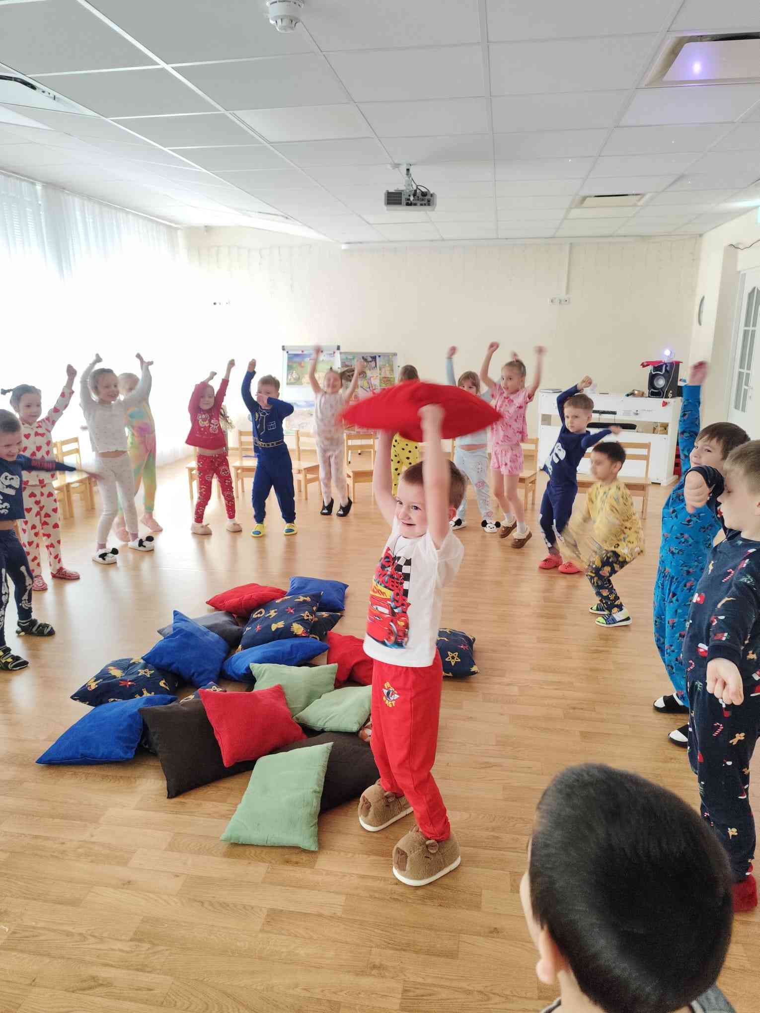 Telpa tika izrotāta ar dažādām nakts lampiņām un krāsainiem spilveniem, radot mājīgu un siltu noskaņu. Pasākuma laikā bērni spēlēja spēles, klausījās pasakas un kopā visi jautri dejoja. Visiem ļoti patika kopīga tējas dzeršana ar cepumiem un šokolādes konfektēm. Skolotājas bija sagatavojušas dažādus uzdevumus un jautras aktivitātes ar spilveniem, kas radīja daudz smieklu un labu noskaņojumu.