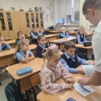 Pēc veiksmīgā ceļojuma pirmklasnieki svinīgi deva skolas solījumu – būt zinātkāri, čakli, draudzīgi un cienīt savus skolotājus. Katrs jaunais skolēns saņēma piemiņas nozīmīti.