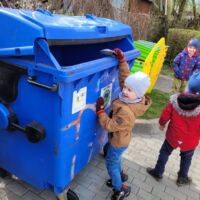 Bērni mācījās šķirot atkritumus, izmantojot dažādas krāsas konteinerus. No vienas puses, bērni mācījās, ka plastmasas šķirošana no citiem atkritumiem ir būtiska, lai veicinātu pārstrādi un samazinātu piesārņojumu. No otras puses, viņi izprata, ka organisko materiālu, piemēram, pārtikas atlieku, kompostēšana ir veids, kā atbalstīt dabas ciklu un samazināt atkritumu apjomu.