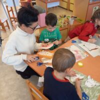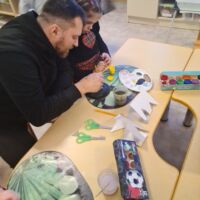 Uzaicinātie vecāki kopā ar  bērniem veidoja  savu Meteņbērna masku.