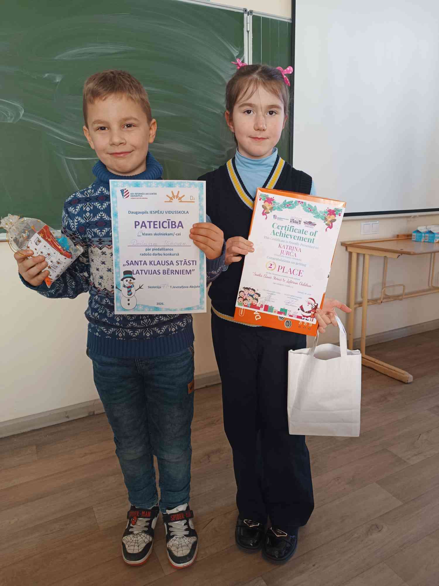Daugavpils Iespēju vidusskolas skolēni uzrādīja augstus rezultātus Latgales Centrālās bibliotēkas ASV Informācijas centra un Daugavpils pilsētas Izglītības pārvaldes rīkotajā Ziemassvētku radošo darbu konkursā skolēniem “Santa Claus Stories to Latvian Children” (latv. – “Santa Klausa stāsti Latvijas bērniem”), kas tika izsludināts 2025. gada decembrī.