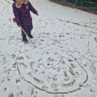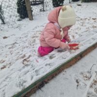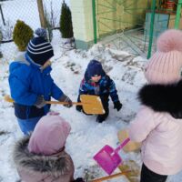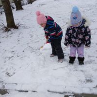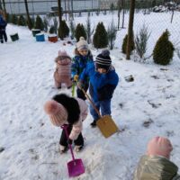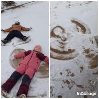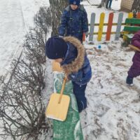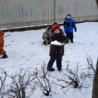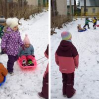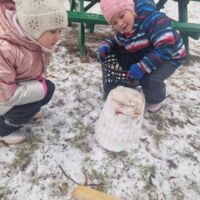 Bērni izmēģināja savus spēkus, piedaloties dažādās jautrās stafetēs ar ragavām, mērīja sniega un ūdens apjomu un svaru, zīmēja eņģeļus uz sniega, pētīja kā kūst sniegs, veidoja sniega pikas.