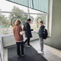 Pamat/vidusskolas skolēniem un skolotajiem tika piedāvāta anonīma aptauja “Psiholoģiskā labklājība”, lai izpētītu emocionālo vidi skolā un visu mācības procesa dalībnieku vajadzības. Lai savāktu atbildes, gaiteņu sienās bija uzkārti QR kodi. Noskenējot tos, vērās vaļā google forms anketa, kuras aizpildīšanai bija jāatvēlē 1 minūti (6 jaut.). Atbildē bija jāizvēlas atbilstoša krāsa.