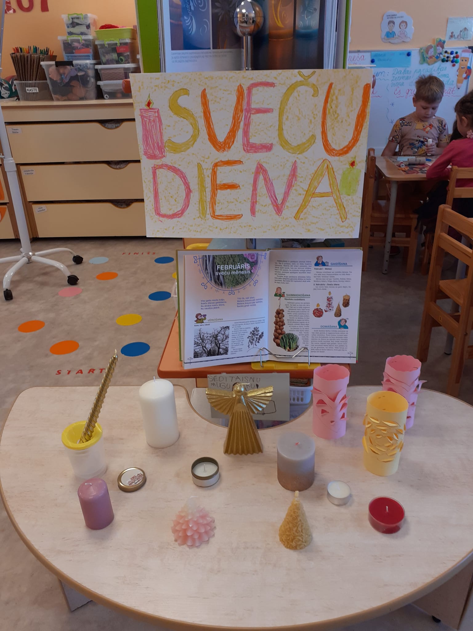 Gatavojoties šai dienai, grupās kopā ar vecākiem tika izveidotas sveču izstādes. Aplūkojot dažādas sveces, bērni ne tikai iepazinās ar to daudzveidību, bet arī ar lielāko prieku stāstīja par to svecīti, kuru atnesa no mājām. Dienas gaitā viņi iepazinās arī ar šīs dienas ticējumiem, pēc vēlēšanās darināja savu svecīti, zīmējot, veidojot vai aplicējot. Pirmsskolnieki uzzināja, ka galvenās šīs dienas tradīcijas ir sveču liešana un dedzināšana.