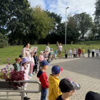 Kamēr skolēnus uz stundām aicina pirmie skolas zvani, pirmsskolnieki pulcējas un jautri pavada laiku kopā.