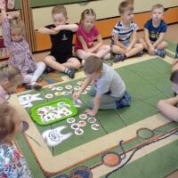Pirmsskolnieki pildīja dažādus uzdevumus: skaitīja, meklēja un krāsoja vienādus zobus; pildīja “ Zobu sudoku”, kur grieza un ielīmēja attēlus pareizajā secībā.